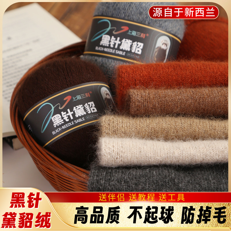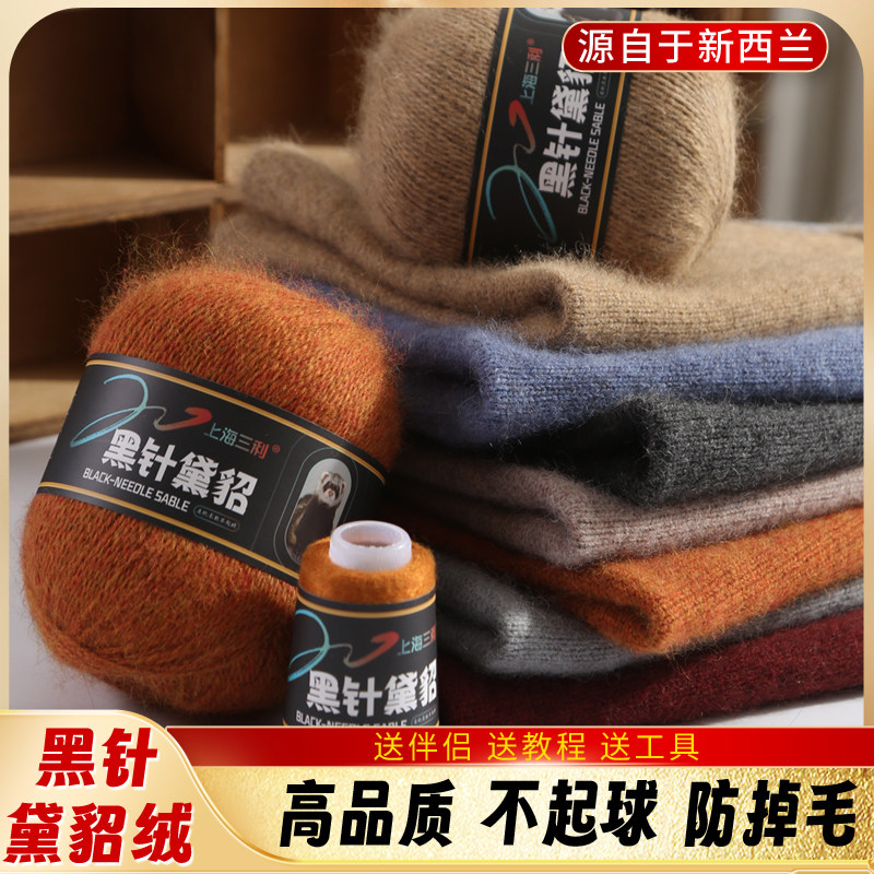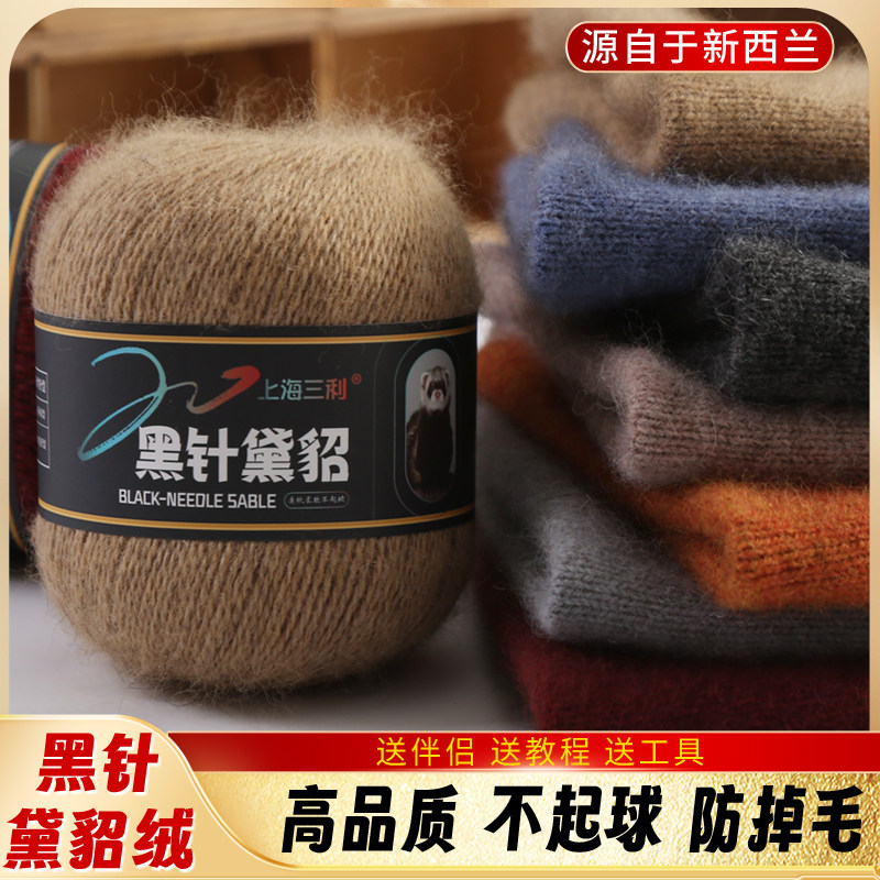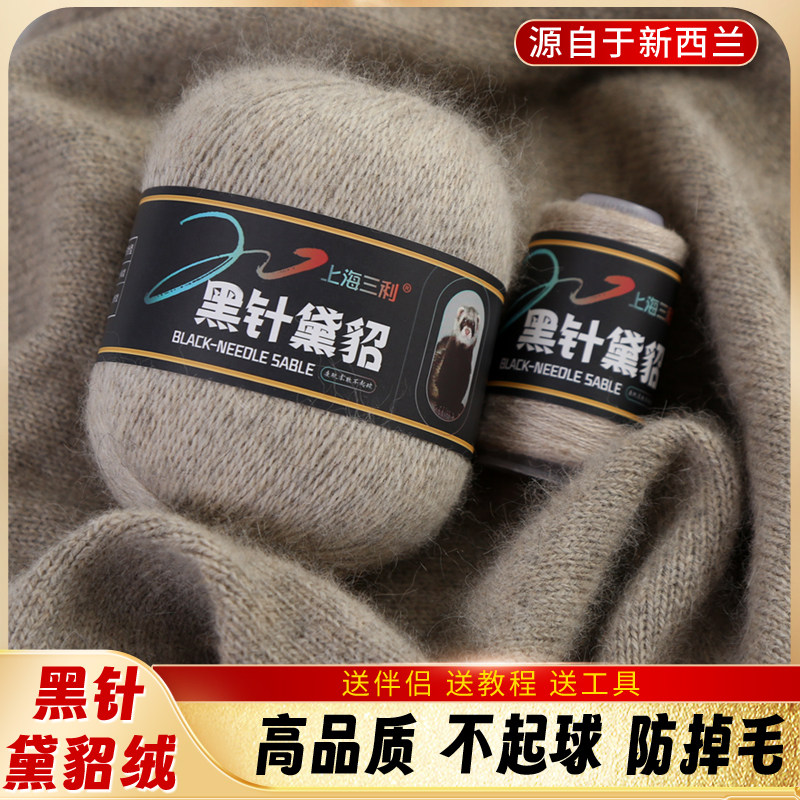 上海三利正品黑针黛貂绒线6+6手编中粗长毛貂绒线围巾手工diy毛线