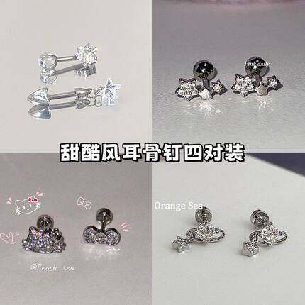可拆卸猫爪双恶魔钉耳钉女外螺旋五角星养耳洞耳环耳骨耳蜗钉耳饰