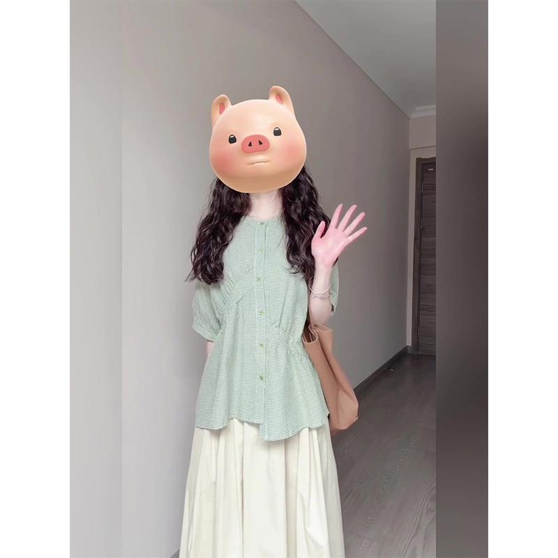 夏装搭配一整套时尚宽松休闲短袖衬衫a字半身裙盐系轻熟两件套装