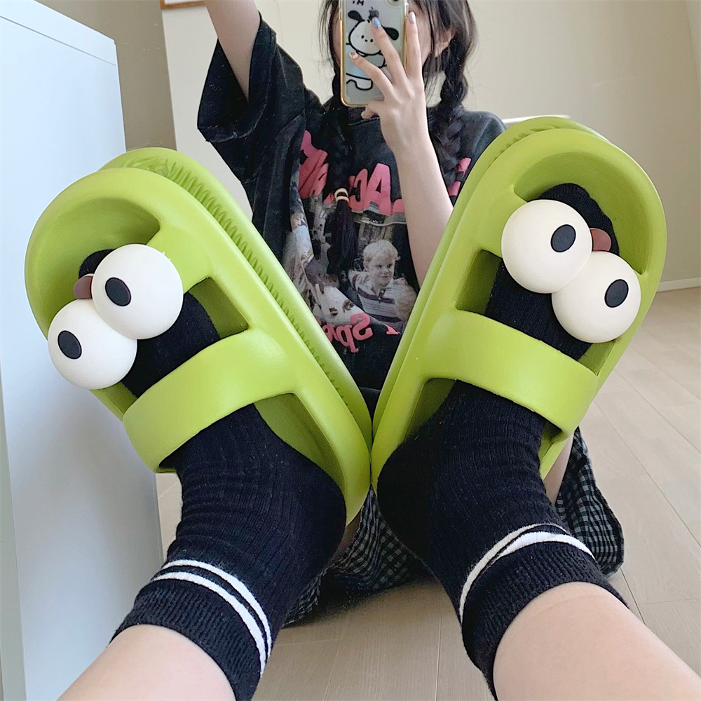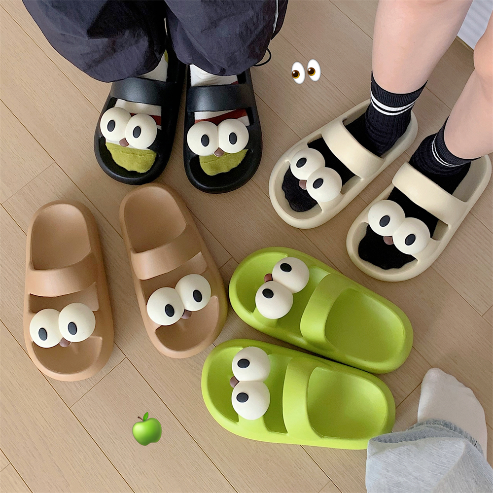 细细条 搞怪可爱大眼睛双带拖鞋男女夏季ins潮时尚外穿情侣凉拖鞋
