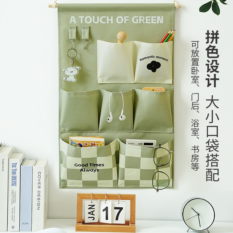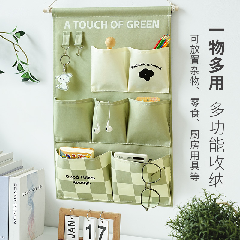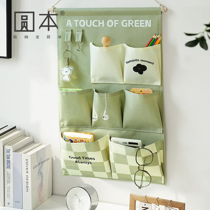 圆本布艺多功能挂袋悬挂卧室宿舍床头防水墙挂式手机收纳袋储物