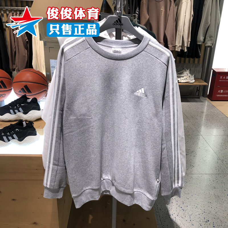 正品阿迪达斯男装冬季新款加绒保暖运动休闲圆领卫衣套头衫IJ6470