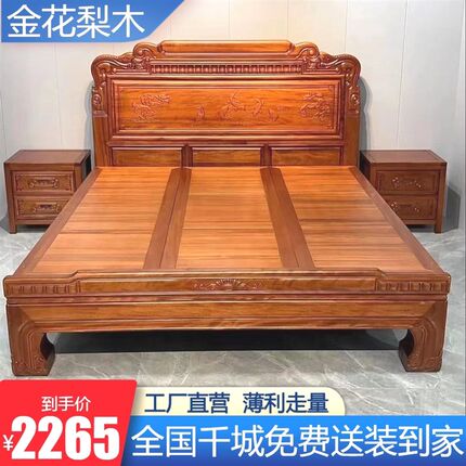 金花梨木实木床1.8米双人床明清古典雕花1.5大床卧室仿古床中式床