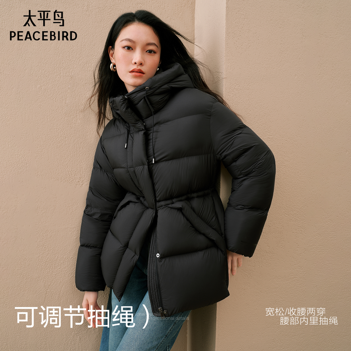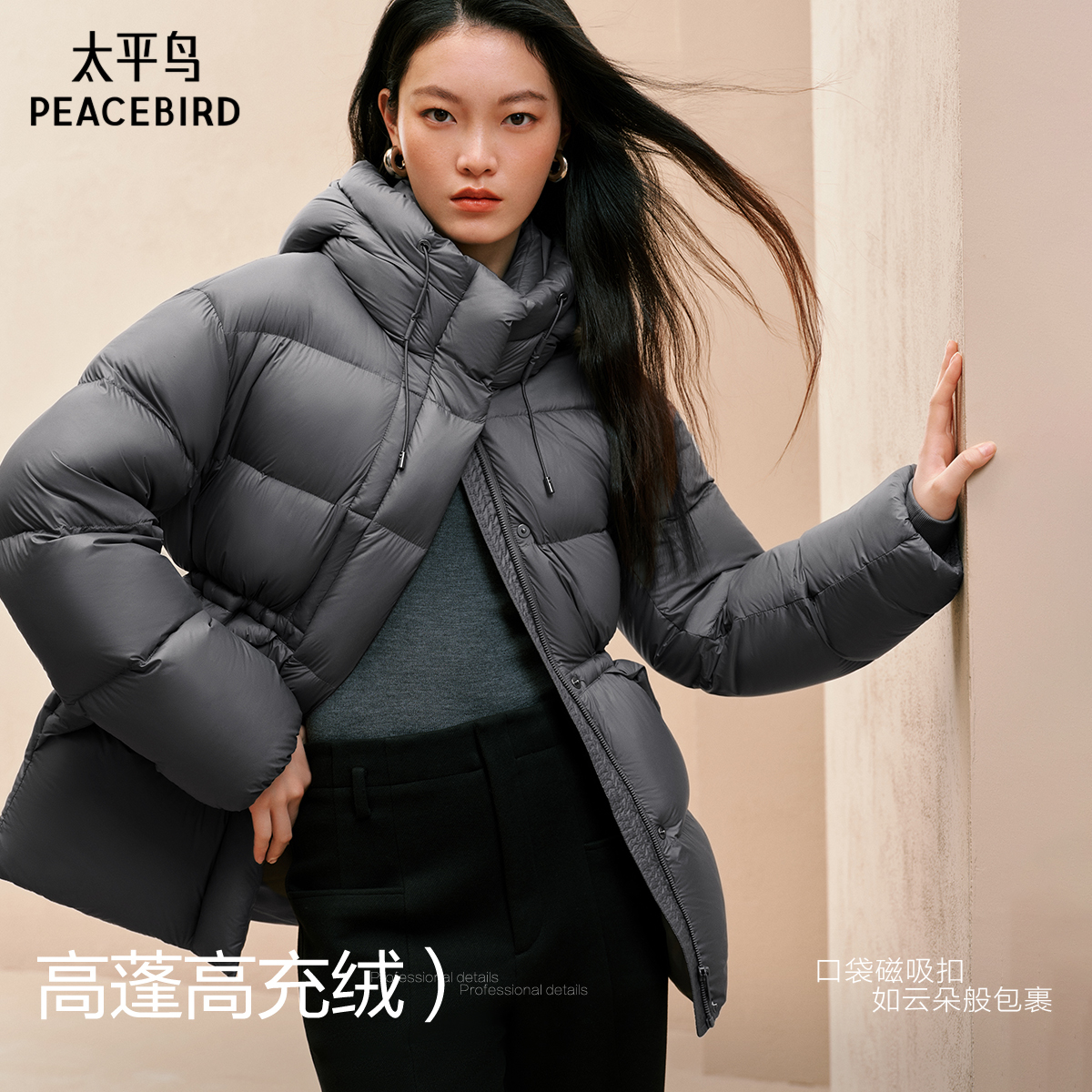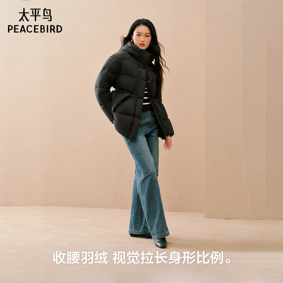张婧仪同款太平鸟女装收腰短款连帽羽绒服款15D泡芙面包服外套