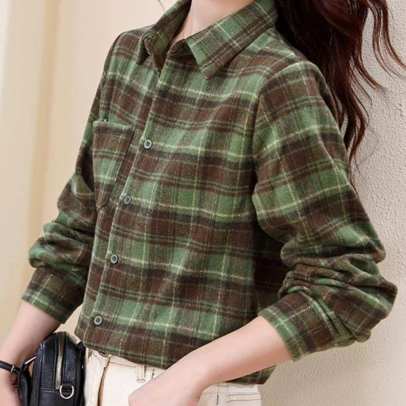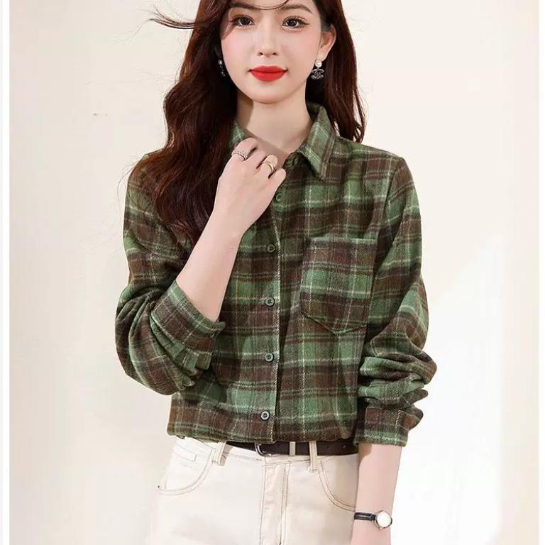 韩版休闲格子衬衫女士春秋装2025年新款外穿长袖打底上衣潮