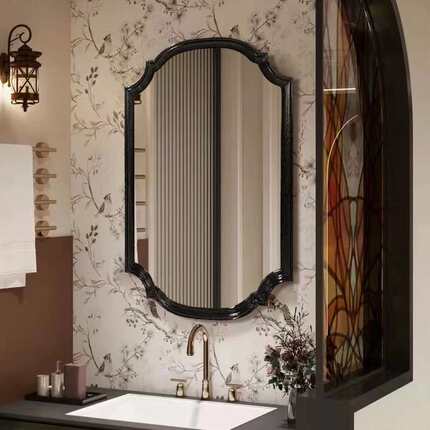?法式复古浴室镜卫生间异形不规则镜子美式壁挂化妆玄关客厅装