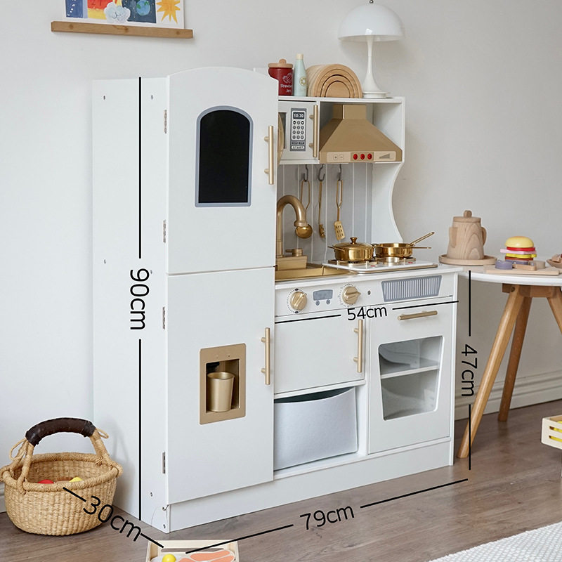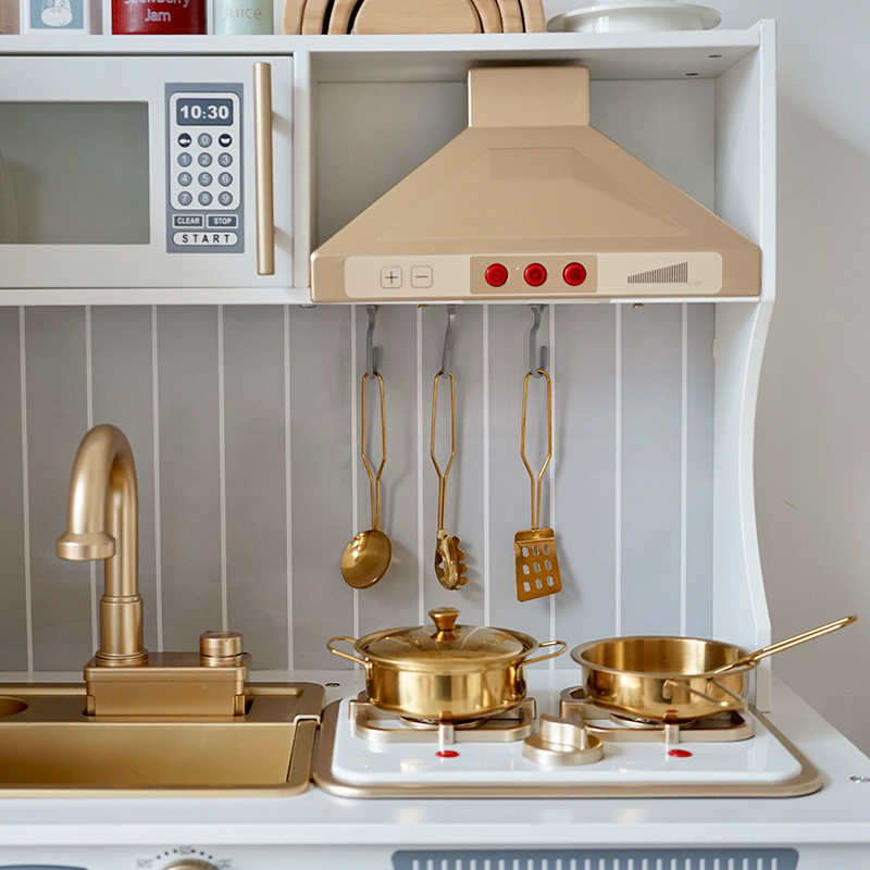 木质过家家儿童黄金厨房玩具仿真烹饪厨具一整套女孩生日礼物套装