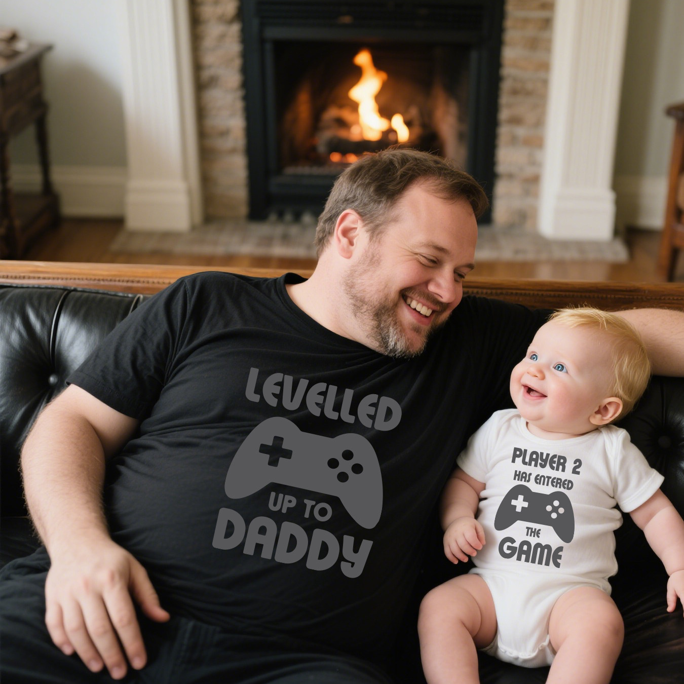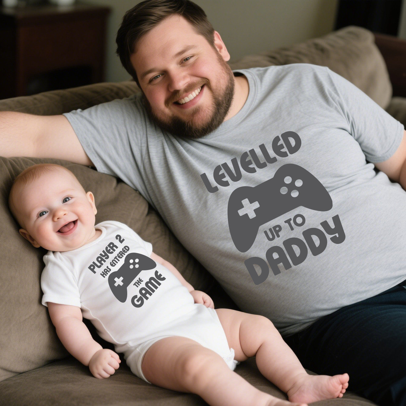 夏季亲子装婴儿爬服Dad And Baby Gamer T Shirt休闲圆领短袖t恤