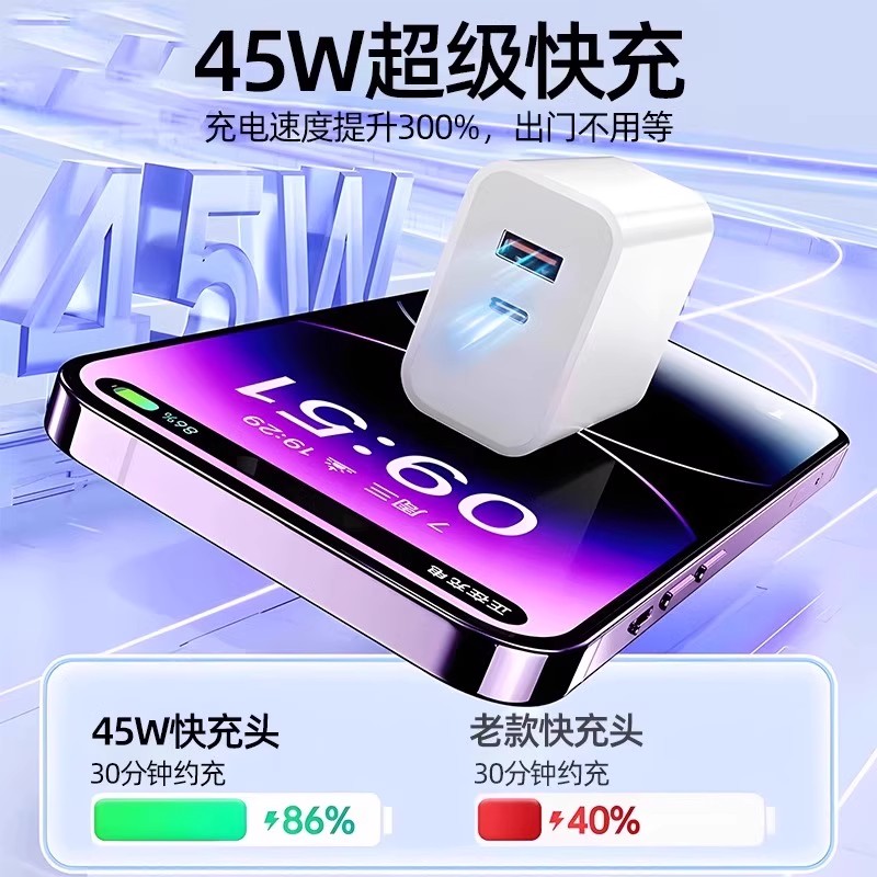 【认证快充】PD45W快充适用苹果iphone16promax充电器头15pro充电头13/14plus闪充12手机11双c数据线正品套装