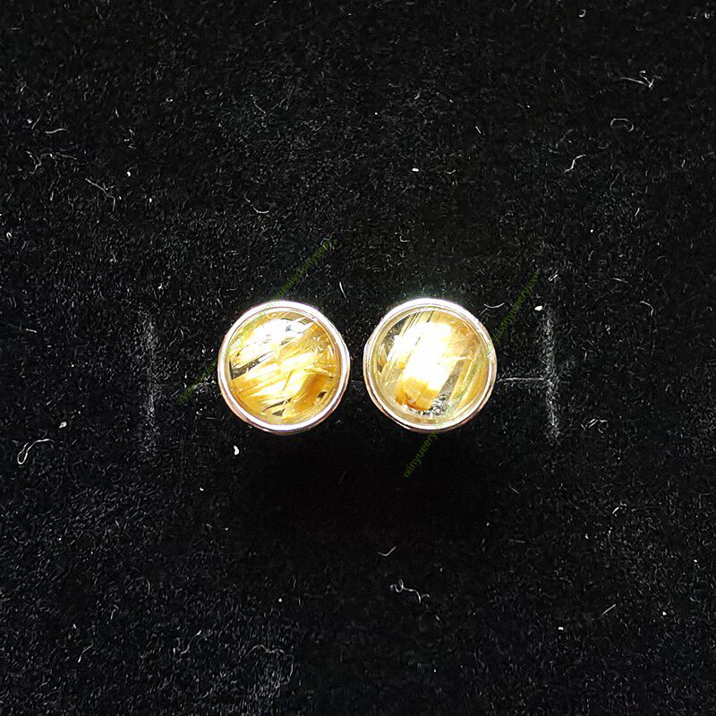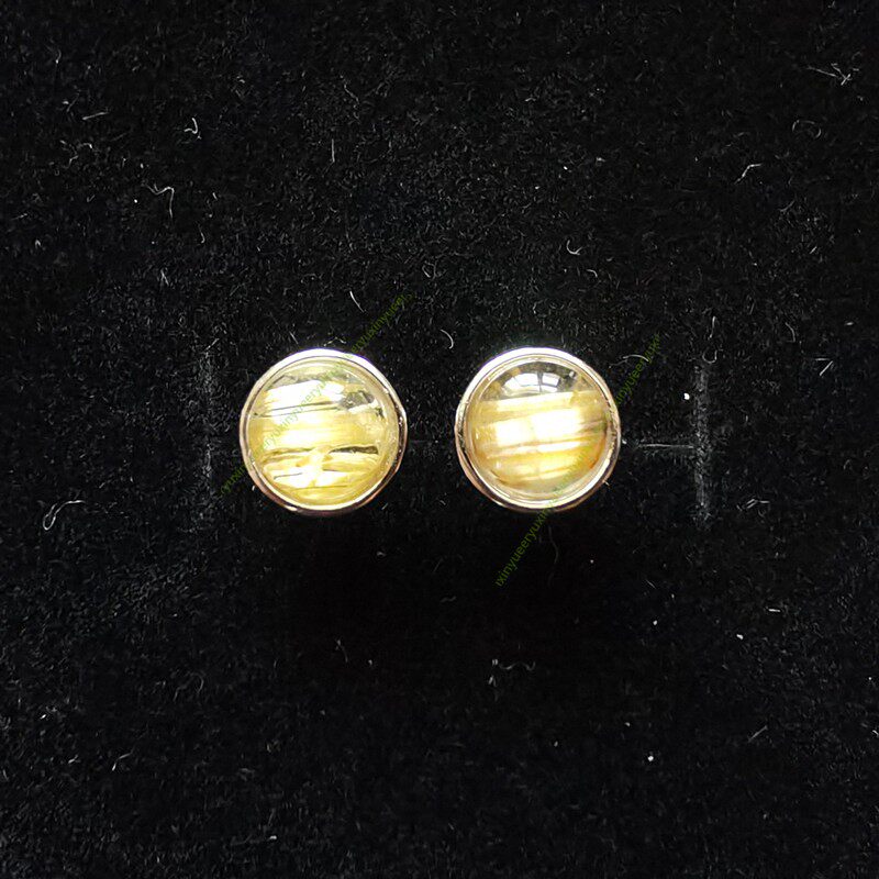 天然水晶金发晶钛晶耳钉S925镶嵌