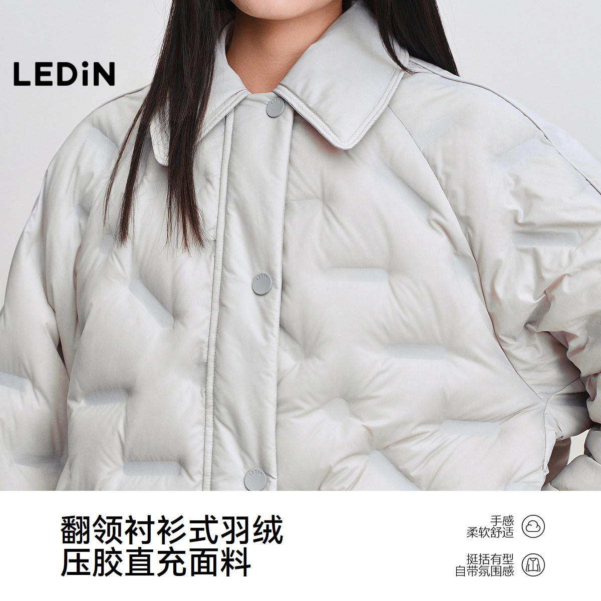 乐町翻领衬衫式轻薄羽绒服女装2025冬季新轻盈保暖短款外套