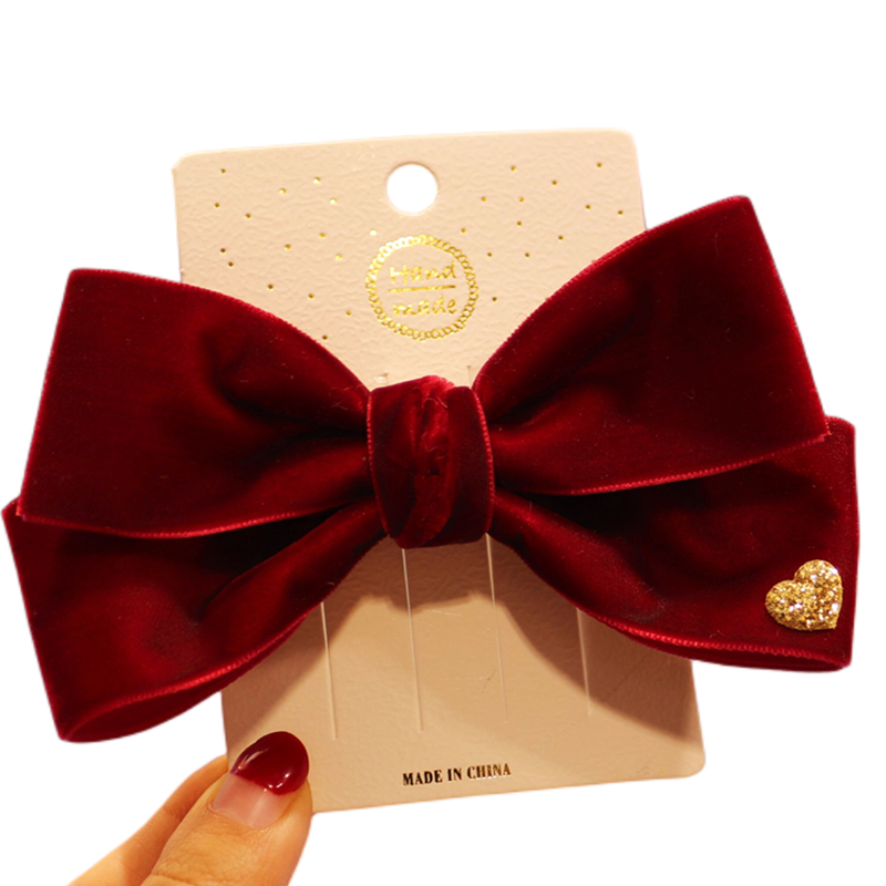 红色丝绒儿童蝴蝶结发夹发圈头绳