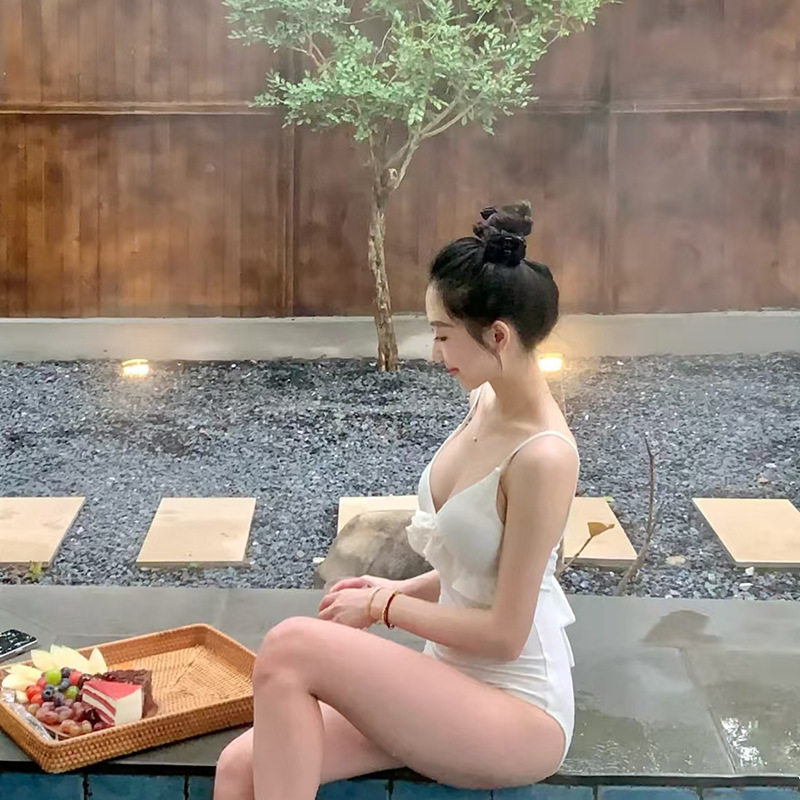 特价新款高级感小众设计立体白玫瑰性感V领三角连体泳衣女辣妹风