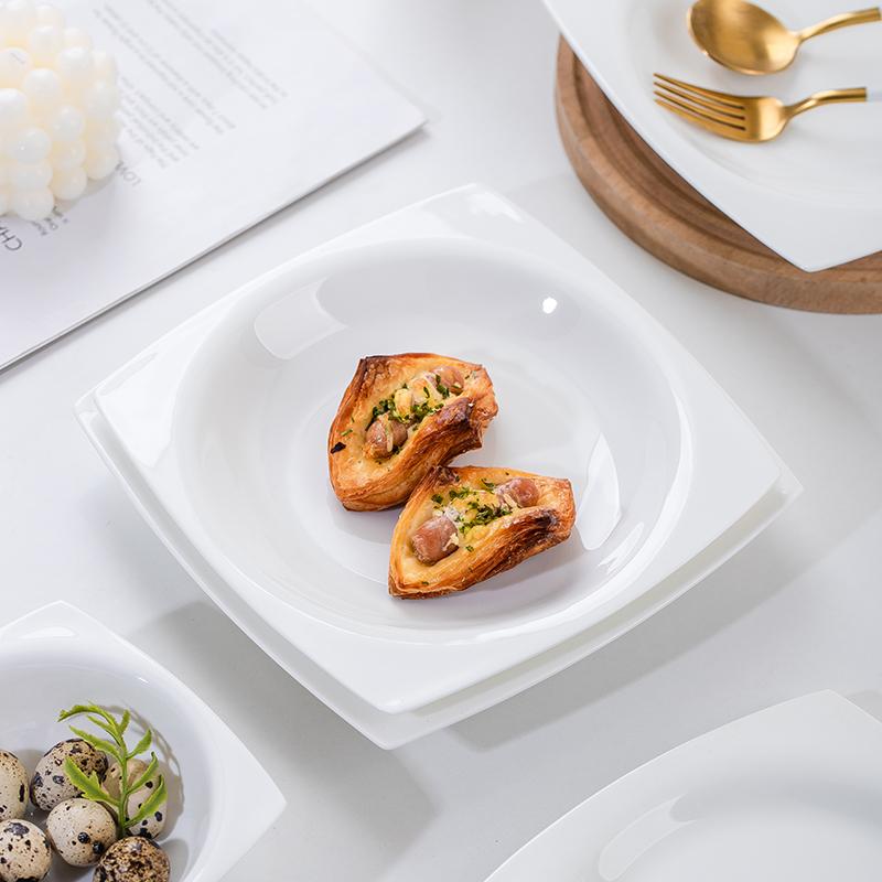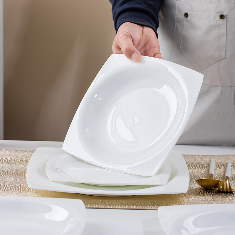 景德镇纯白骨瓷餐具天元西餐盘正方平盘菜盘创意牛排盘子套装汤盘