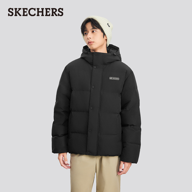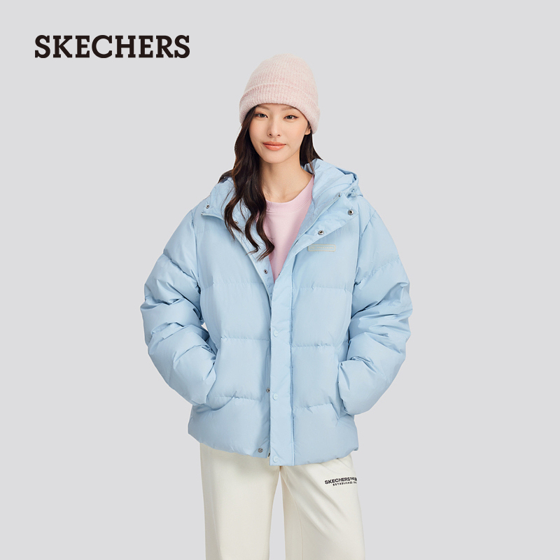 斯凯奇冬季男女同款短款羽绒服外套紫色宽松显瘦百搭流行保暖上衣