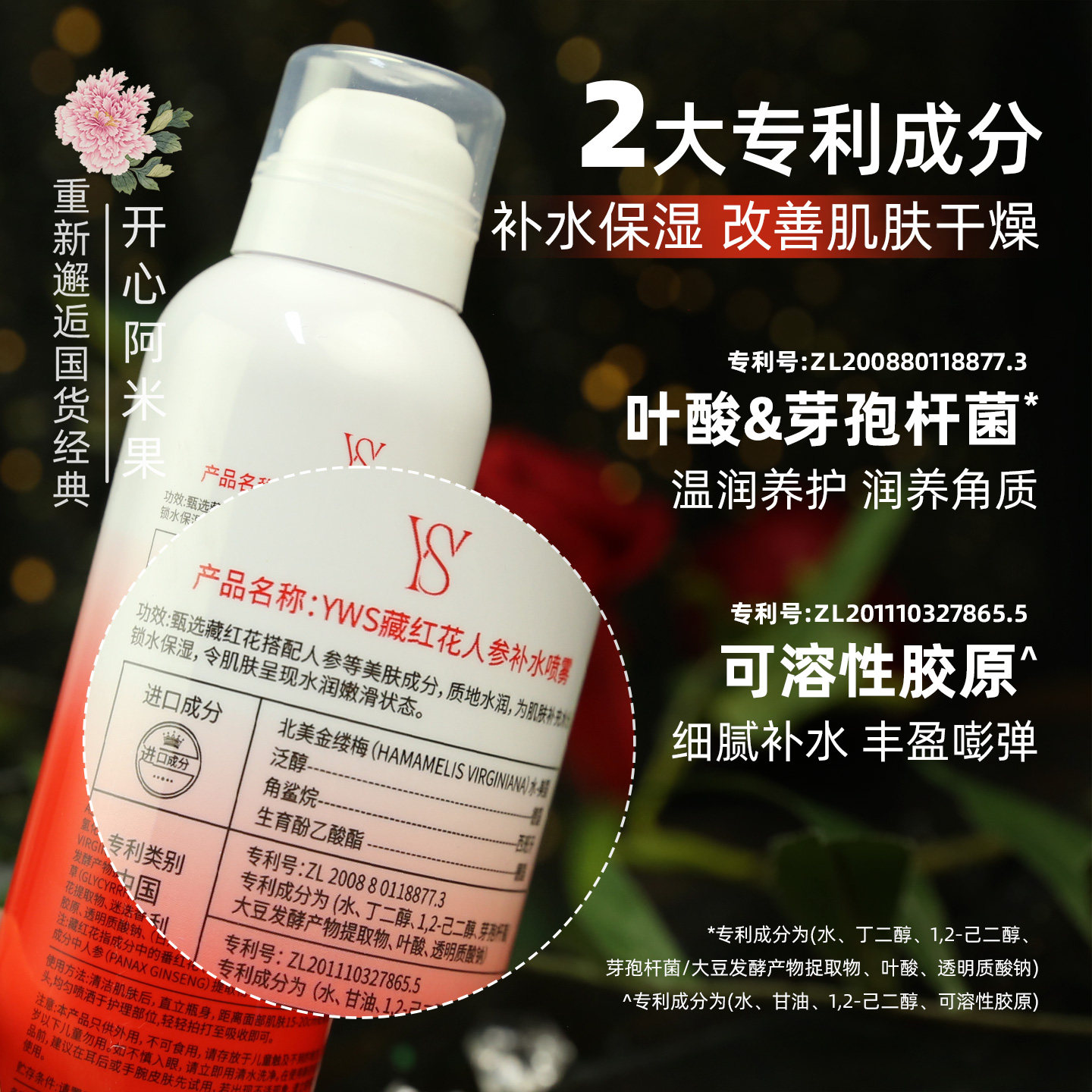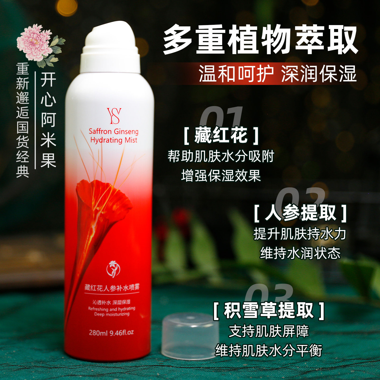 YWS藏红花人参补水喷雾 爽肤水妆前晒后保湿水湿敷水学生党护肤品