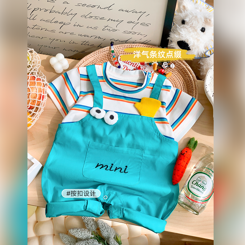 婴儿连体衣夏季薄款哈衣宝宝夏装衣服婴幼儿超萌假两件背带爬服潮