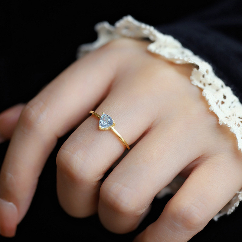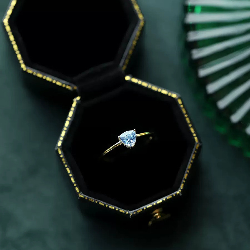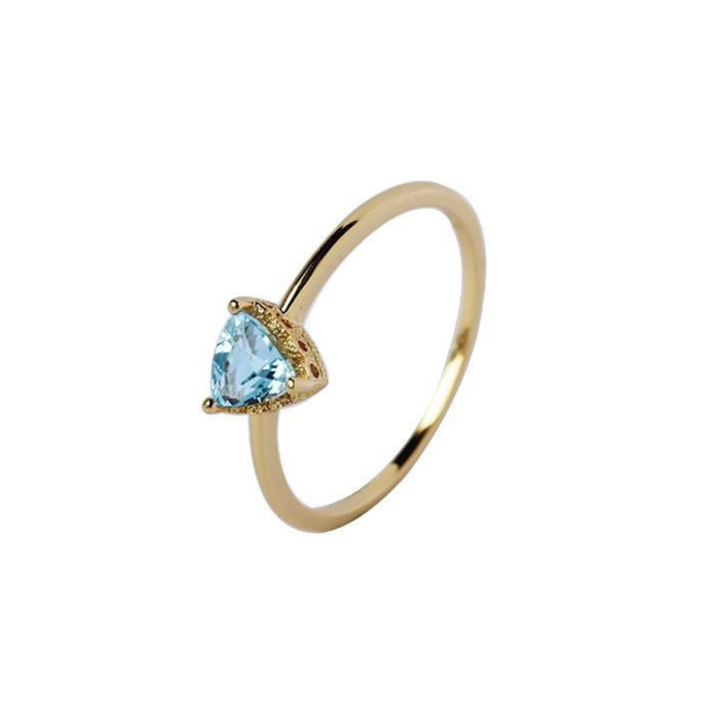 托帕石三角形切割戒指镶嵌天空蓝