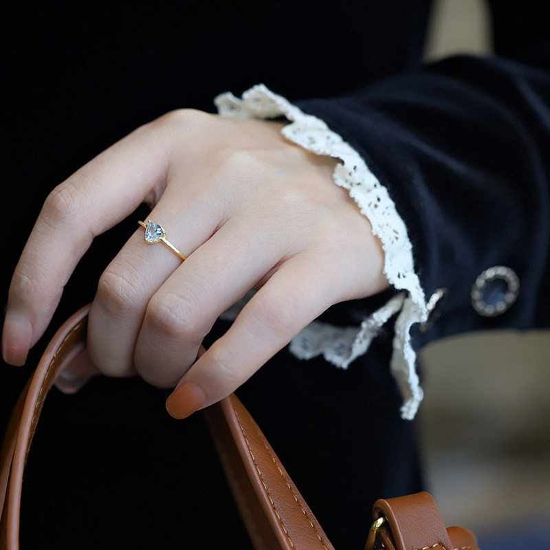 托帕石三角形切割戒指镶嵌天空蓝指环可调节