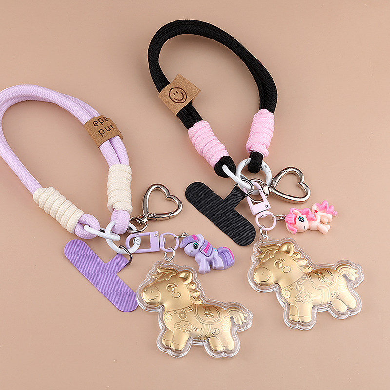 创意马上有钱手机链2025新款挂件钥匙扣包包挂饰卡通可爱塑箔金马