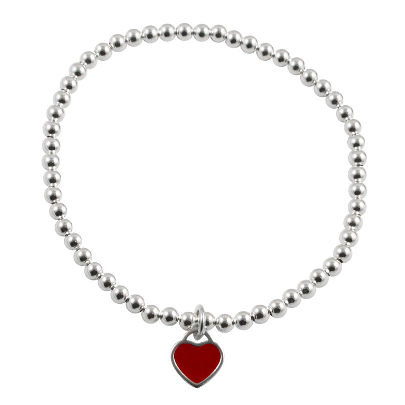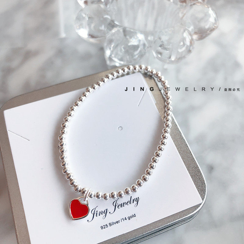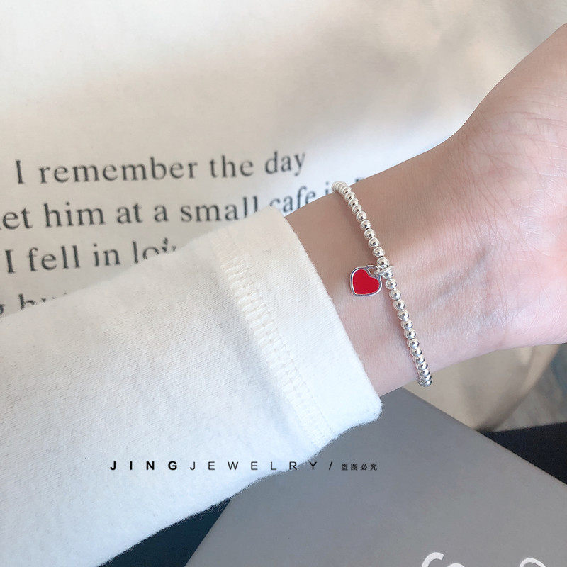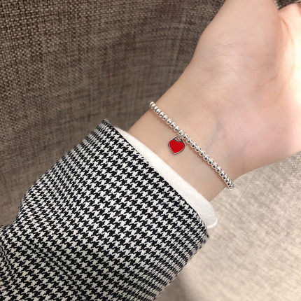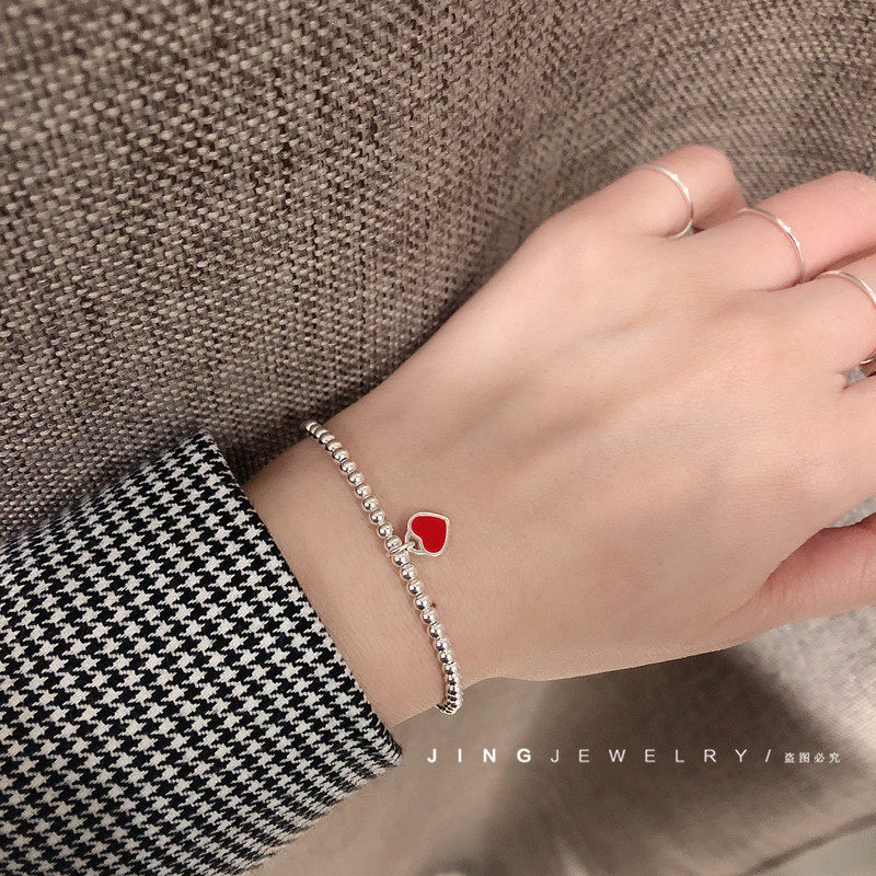 S925纯银超细小红爱心手链女宝宝儿童银珠手串少女甜美风亲子款