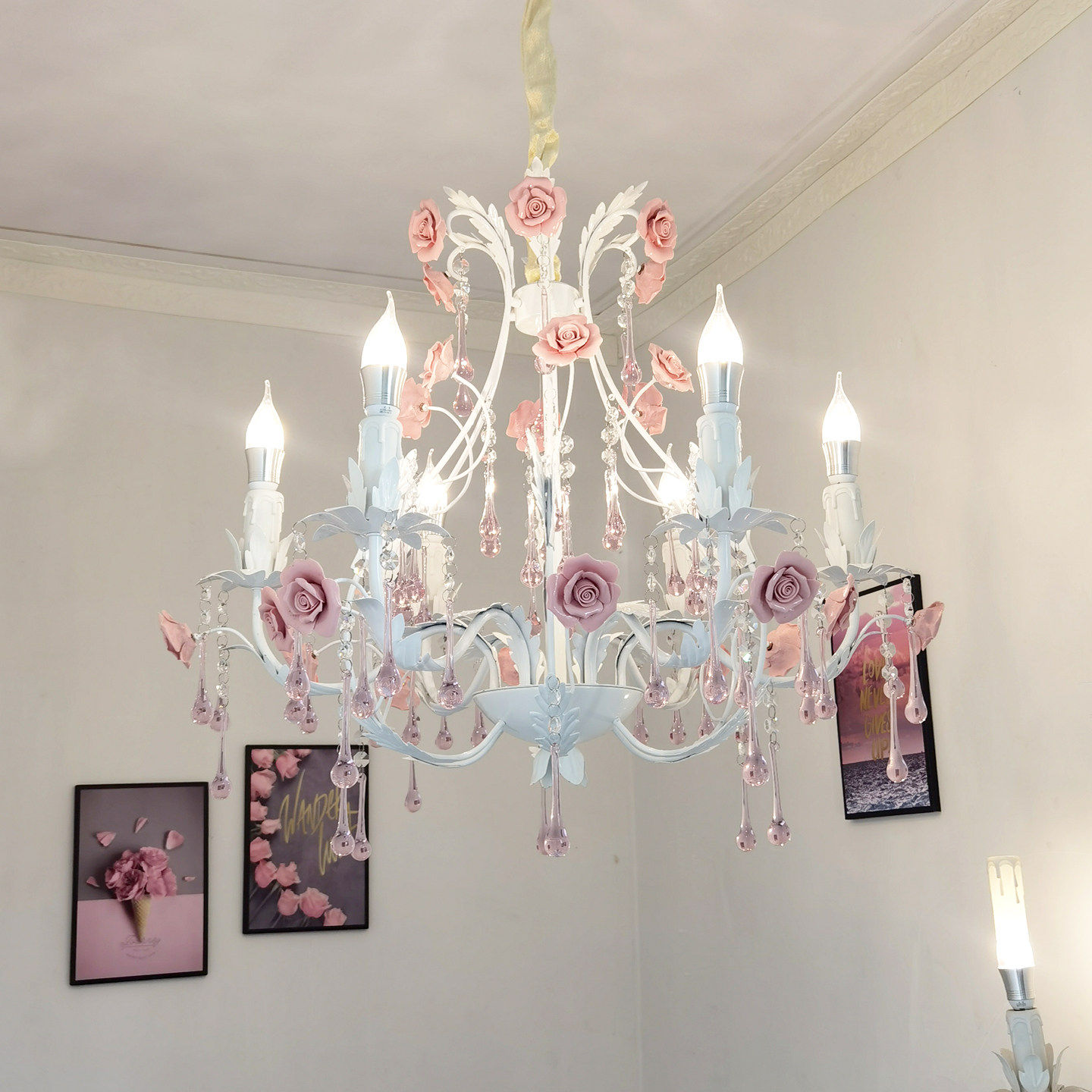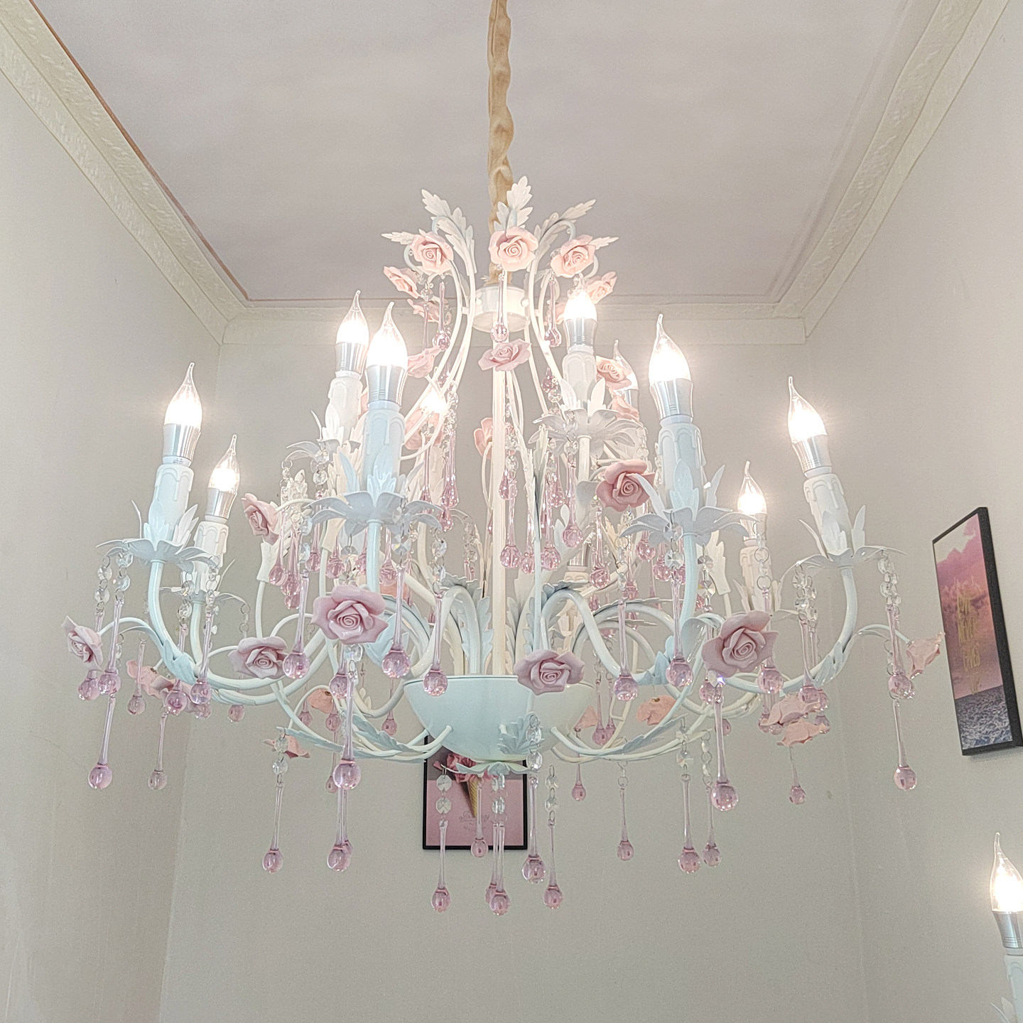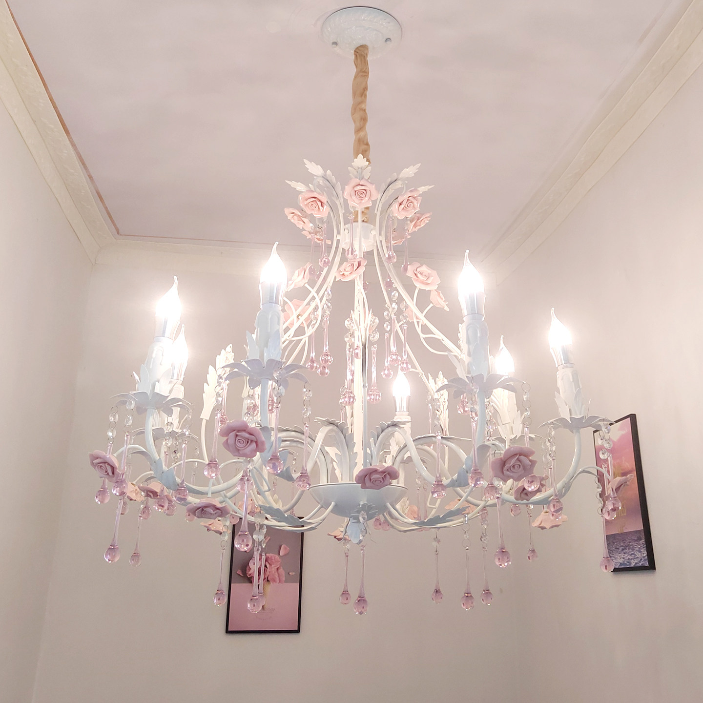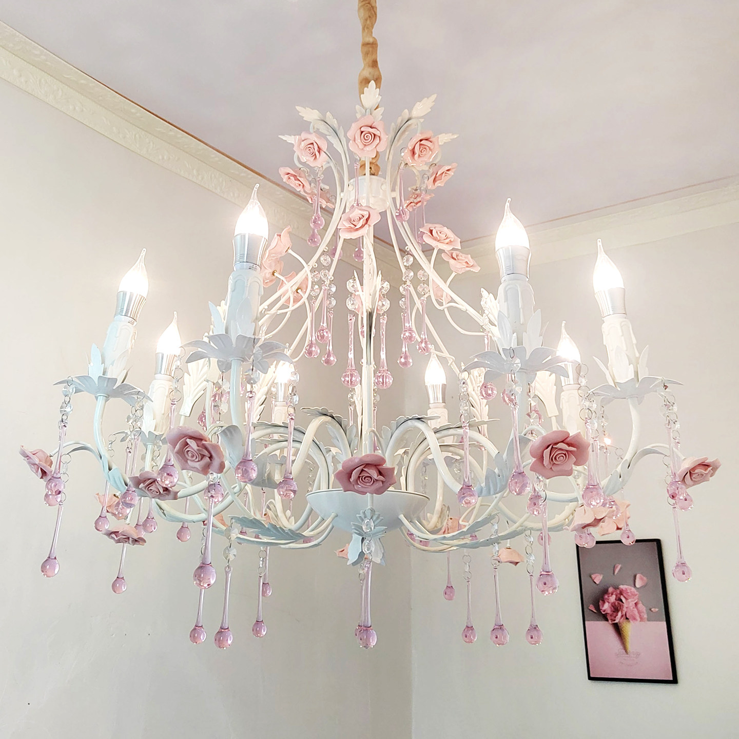 田园风格轻奢水晶吊灯铁艺花草店铺灯具韩式玫瑰客厅公主卧室灯饰