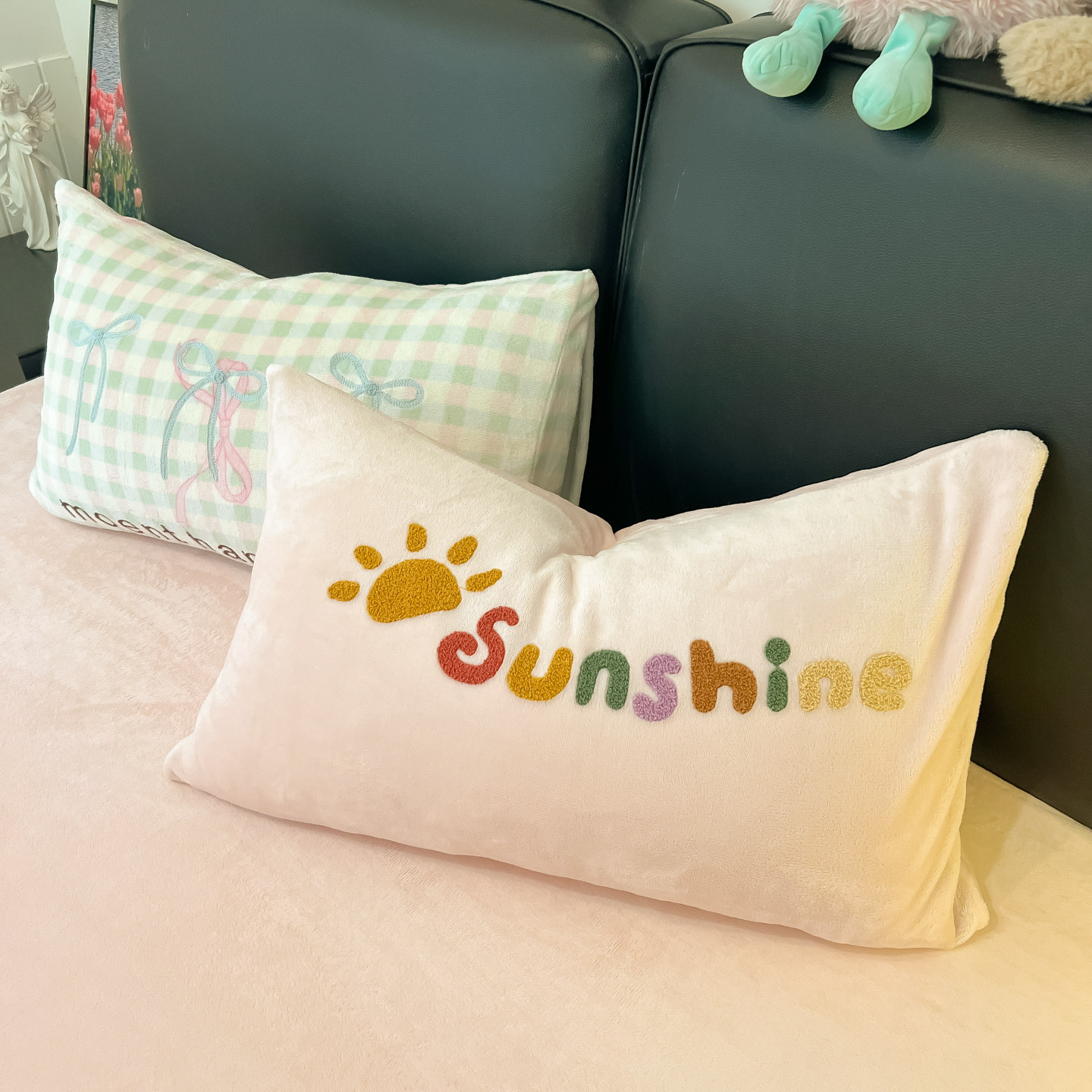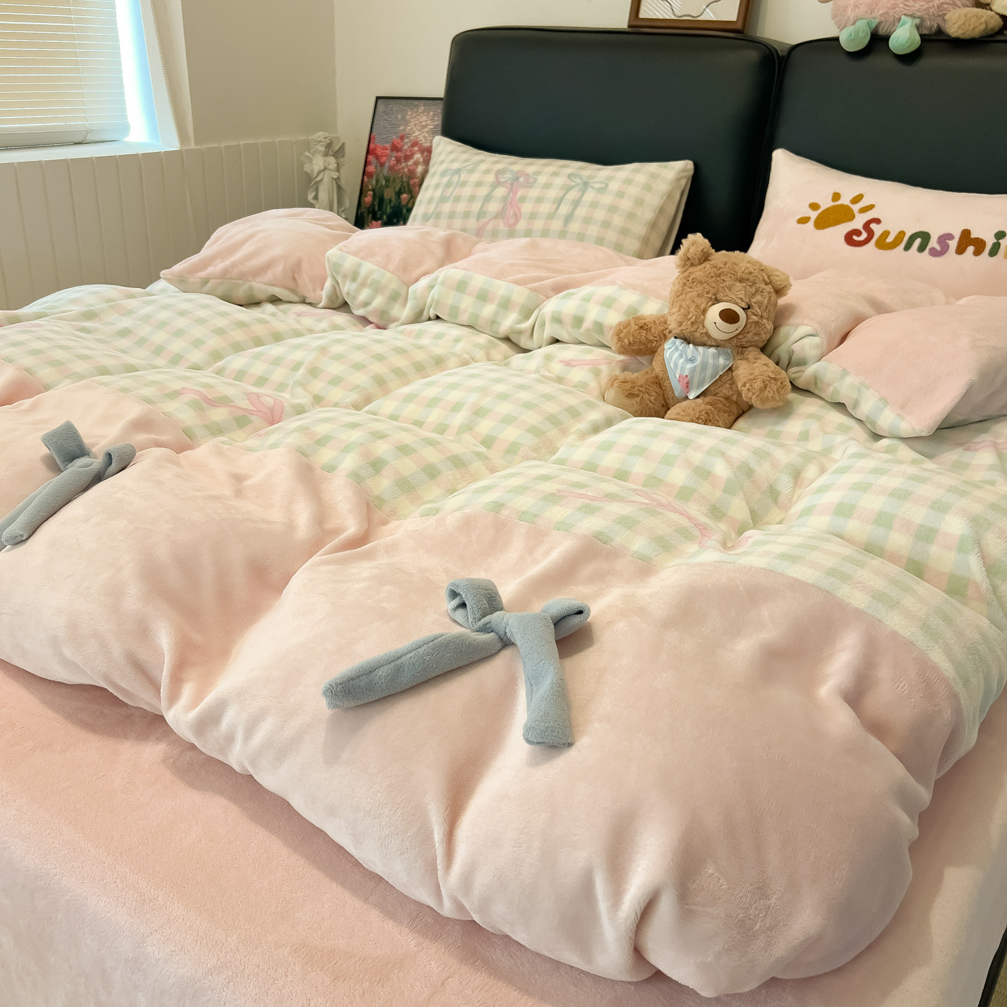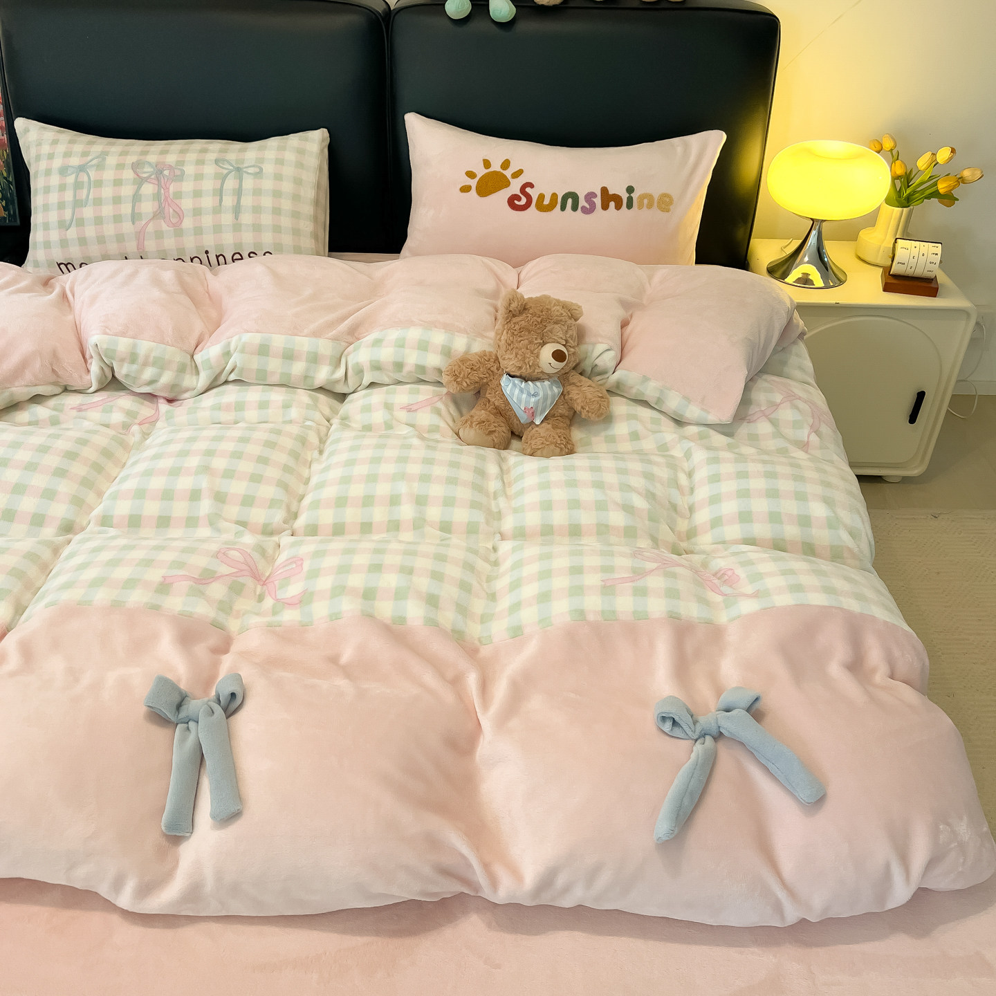 韩系少女蝴蝶结毛巾绣牛奶绒四件套冬季加厚珊瑚法兰绒被套三件套