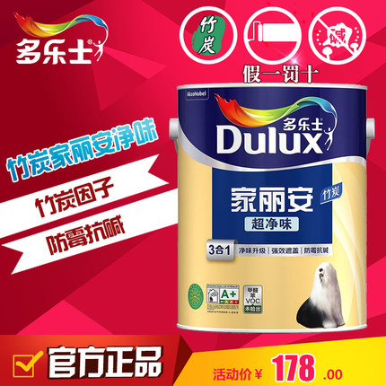 多乐士竹炭家丽安净味乳胶漆内墙漆涂料油漆家用自刷白色A8678