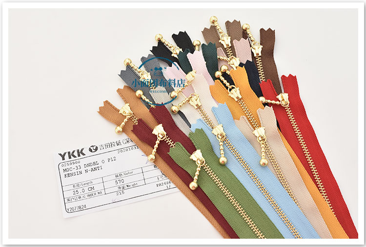 日本YKK金色水滴头3号闭口金属拉链16cm25cm包包DIY手工21色入