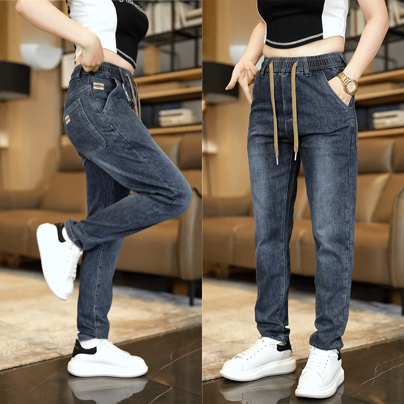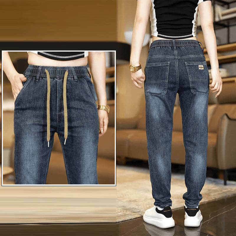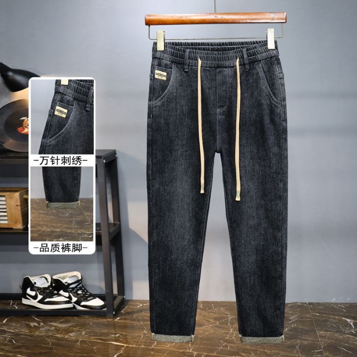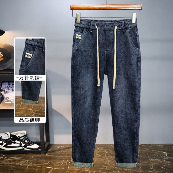 弹力牛仔裤男款宽松松紧腰春秋休闲直筒长裤耐脏耐磨劳保工作裤男