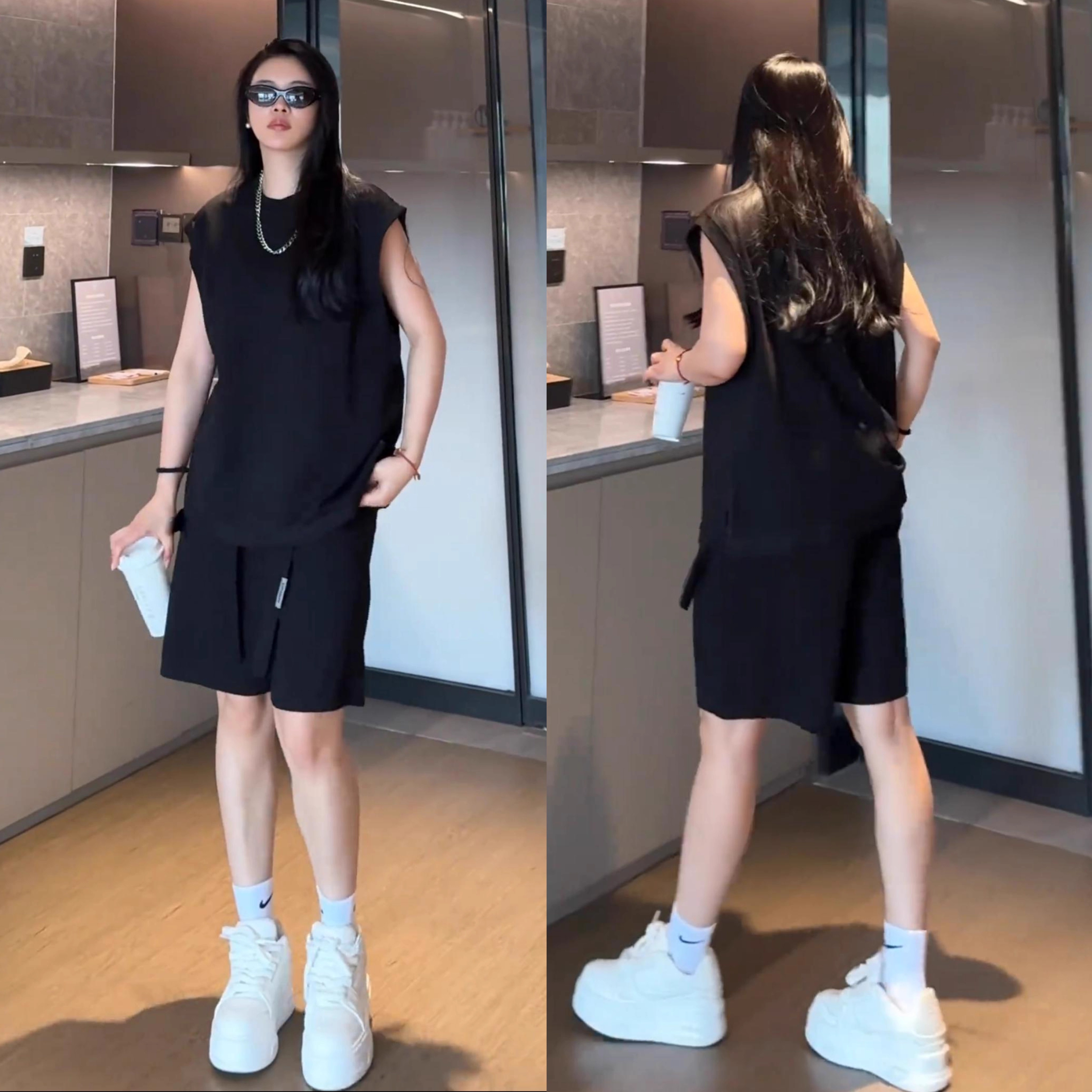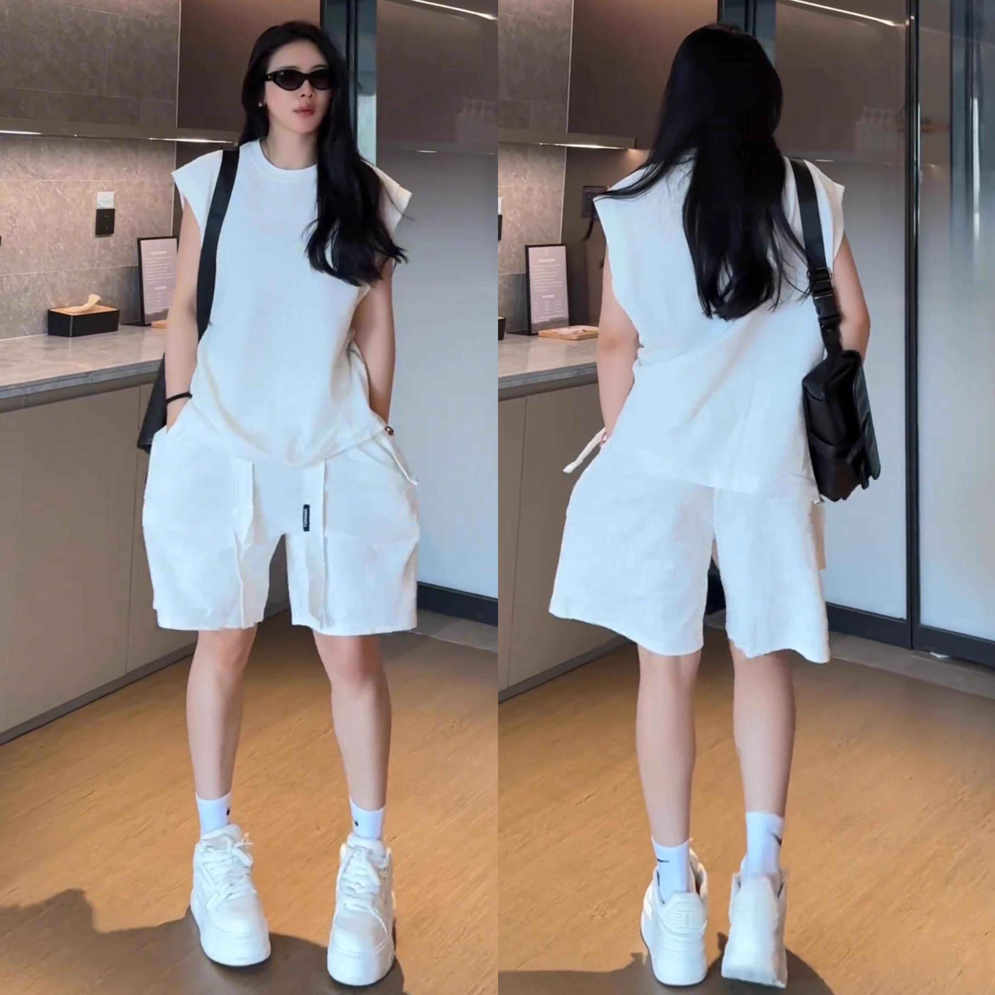 高档宽松无袖背心短裤运动两件套