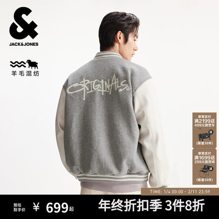 【商场爆款】杰克琼斯男装秋冬季毛呢大衣夹克宽松外套225427023