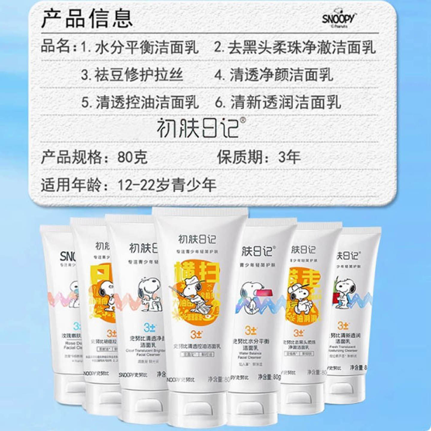 史努比清透净颜洁面乳儿童青少年学生补水保湿控油洗面奶提亮肤色