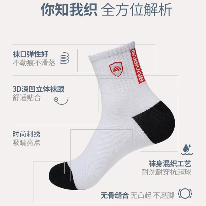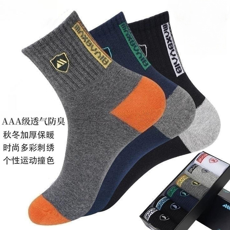 诸暨袜子男中筒袜纯棉100%男士运动袜子全棉防臭长袜防滑吸汗透气