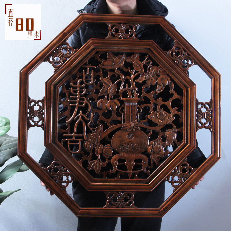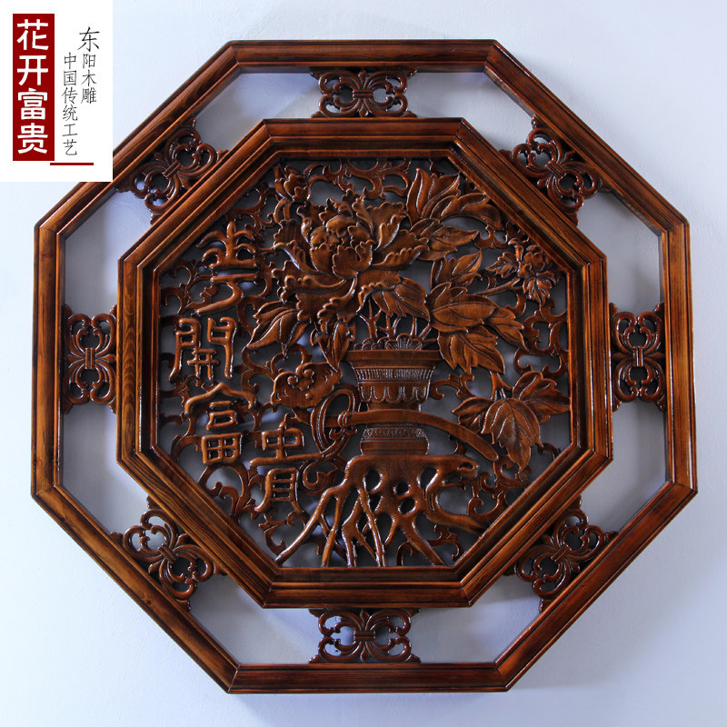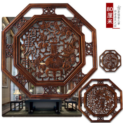 东阳木雕 挂件香樟木头工艺品中式客厅艺术装饰品百事大吉 牡丹鱼