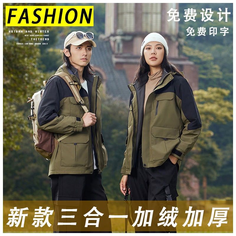 冬季冲锋衣定制三合一拆卸防风防水透气登山保暖工作服印logo定做