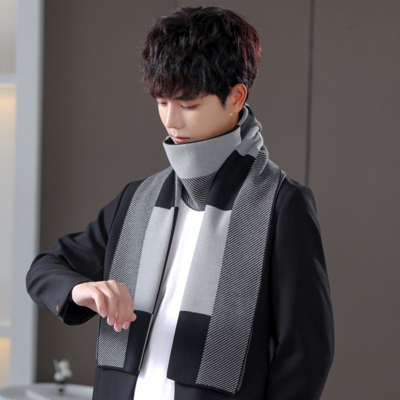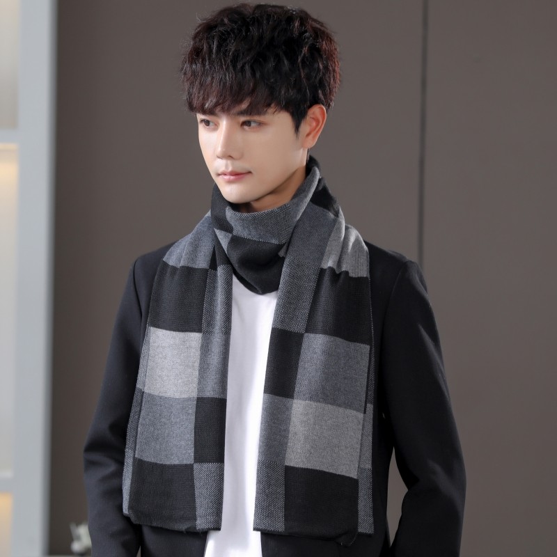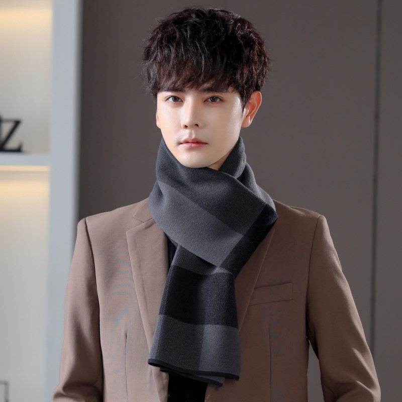 围巾男冬季男士围脖韩版高档中年潮百搭简约仿羊毛围巾生日礼盒装
