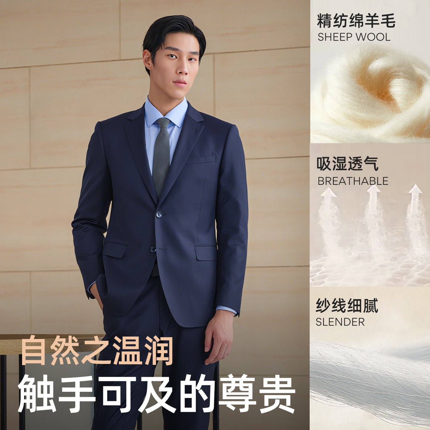 雅戈尔西服秋季新款男士高性价比婚庆商务休闲时尚纯羊毛西装外套