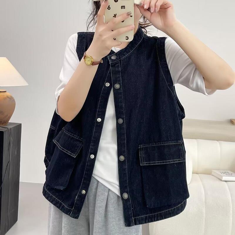 2025新款韩版早秋流行牛仔马甲女2025年新款韩系简约无袖外套短款