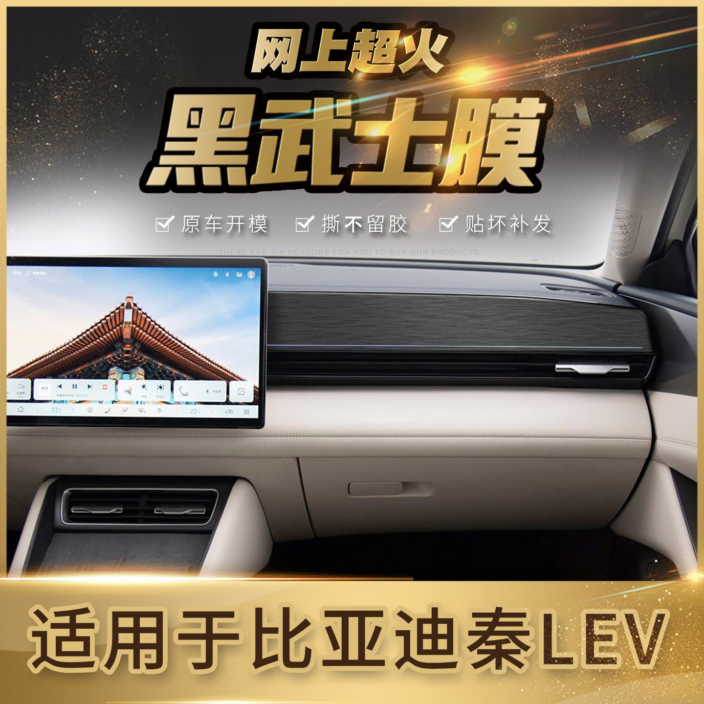 比亚迪秦LEV中控贴膜面板仪表台出风口内饰用品钢琴烤漆贴黑武士