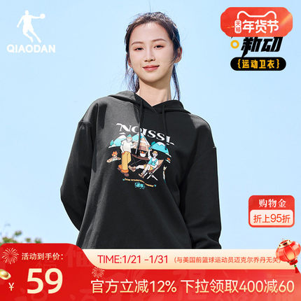 乔丹连帽字母女生卫衣2025冬季新款休闲百搭大图案学生通勤运动