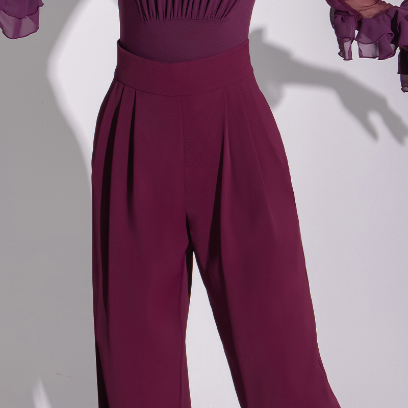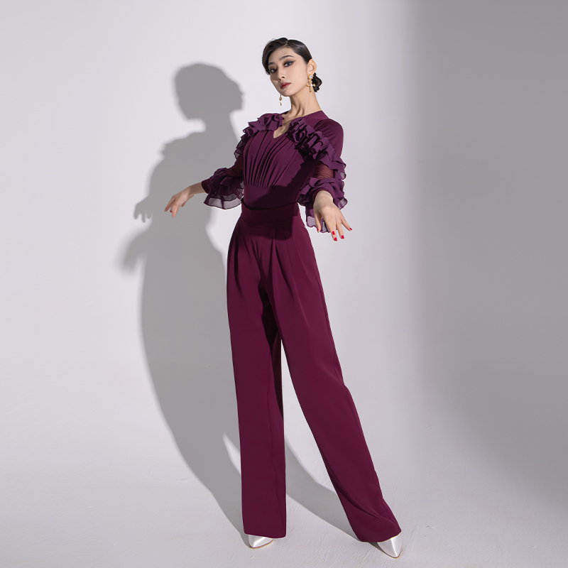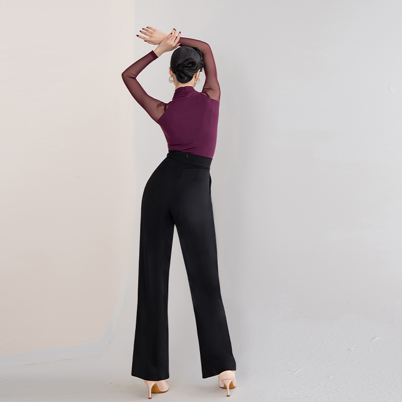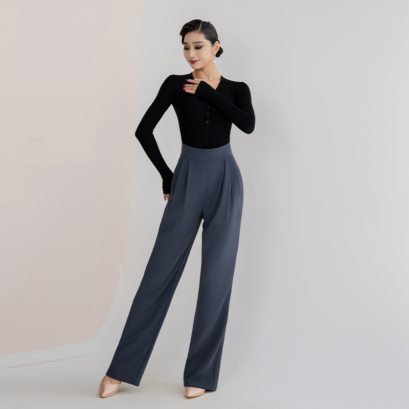 摩登裤交谊舞女裤舞蹈裤子新款高级摩登舞裤练功裤高腰长裤 MD38