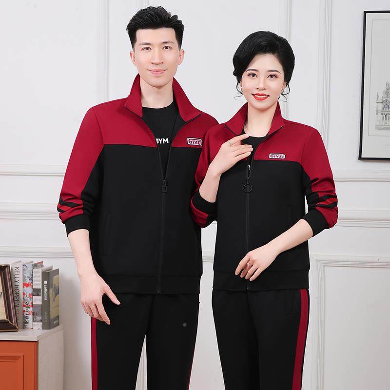中老年82098748情侣运动套装女男士春爸秋季新款爸妈妈三休闲服装