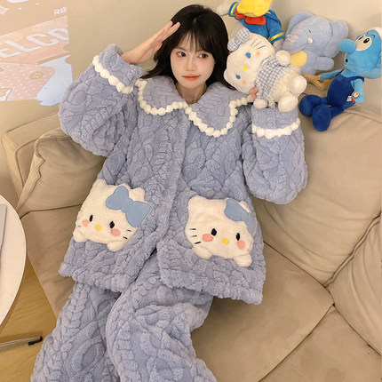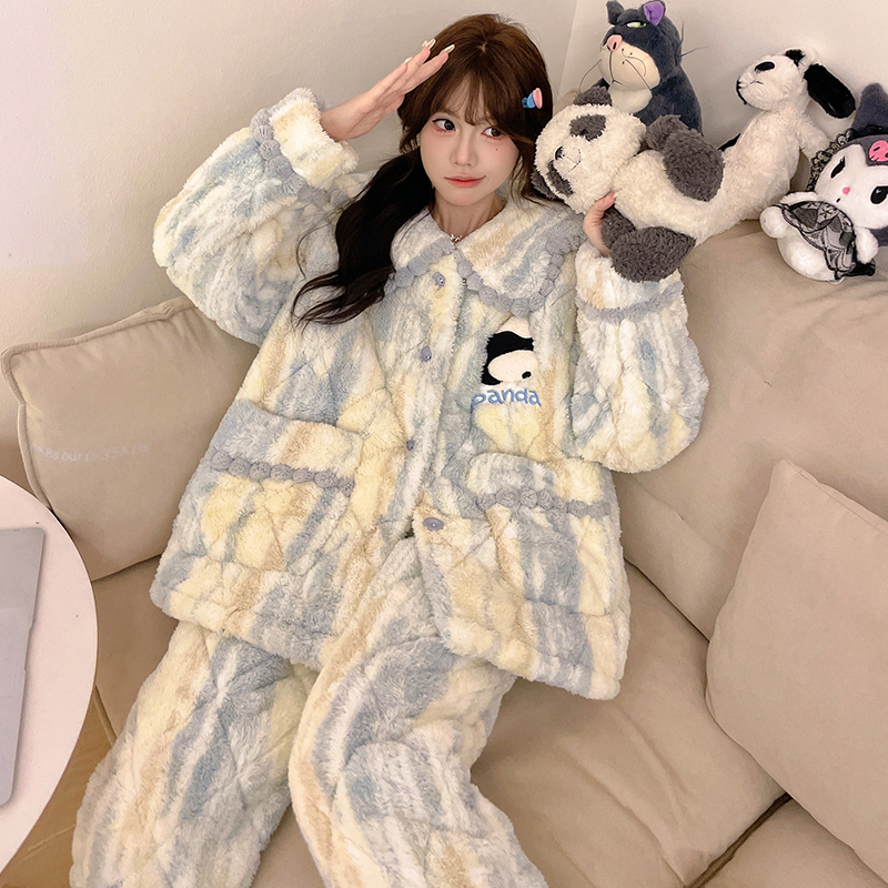 珊瑚绒睡衣女冬季三层夹棉加厚绒