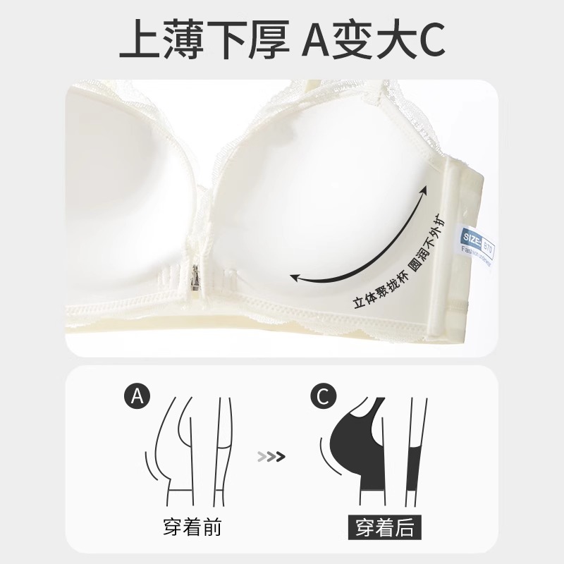 内衣女小胸性感蕾丝美背前扣聚拢调整显大无钢圈上托收副乳文胸罩
