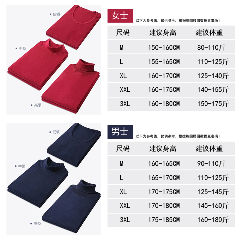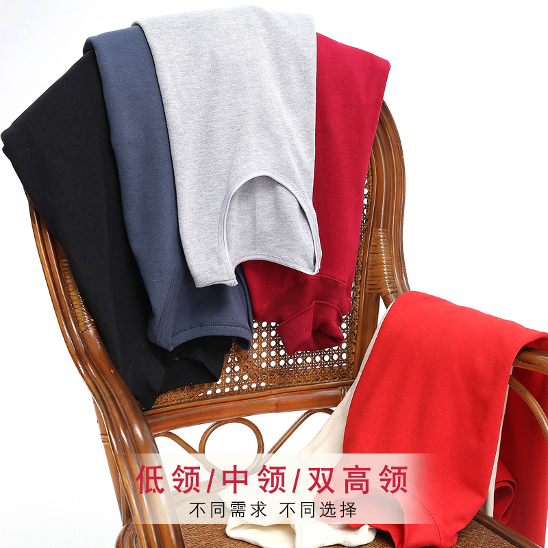 高领秋衣男士纯棉单件上衣棉毛衫女全棉中老年妈妈保暖内衣打底衫