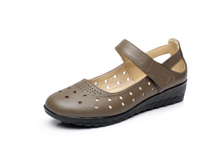 小码真皮防滑坡跟镂空洞洞妈妈鞋