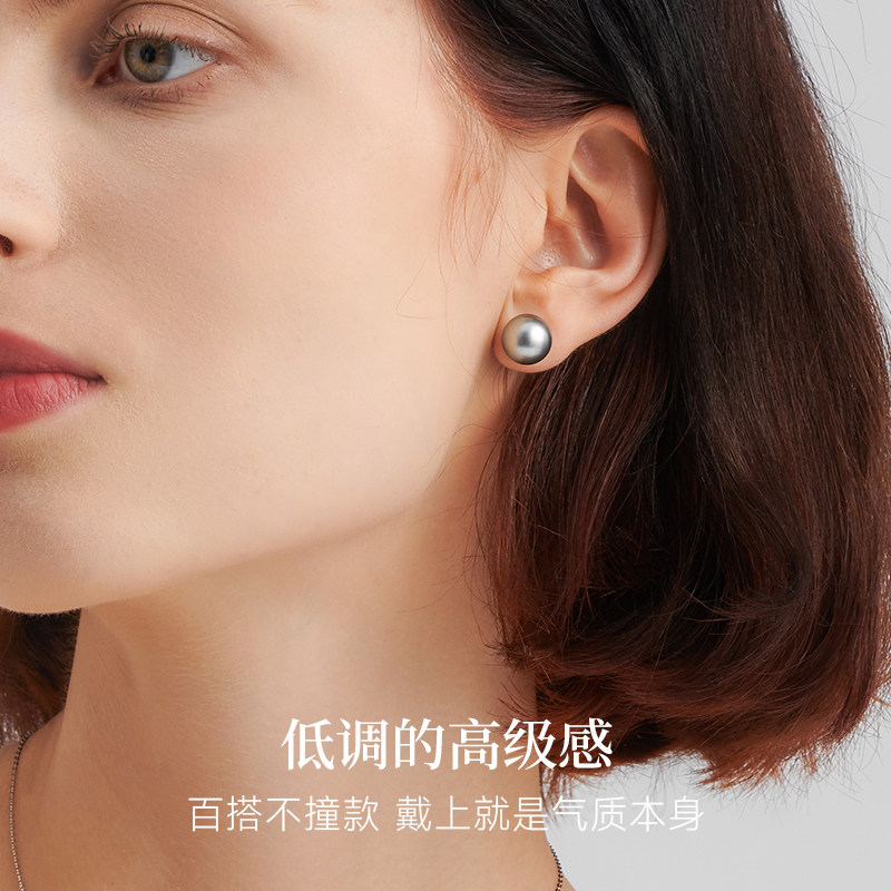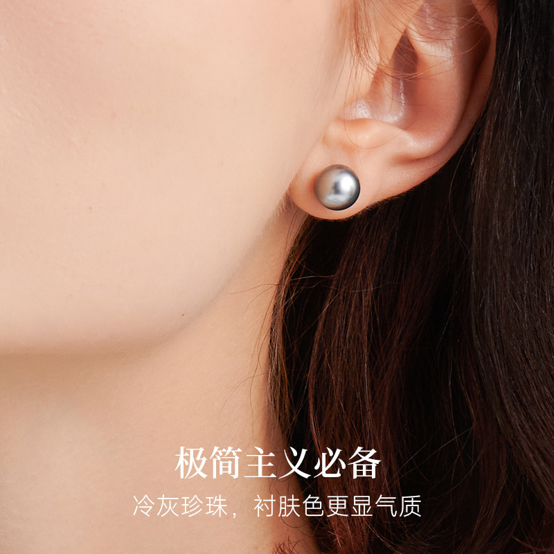 GiO珠宝大溪地铂金灰海水黑珍珠耳钉女18K金耳饰吉尔德证格雷系灰