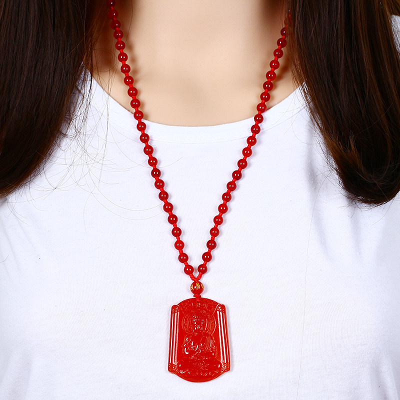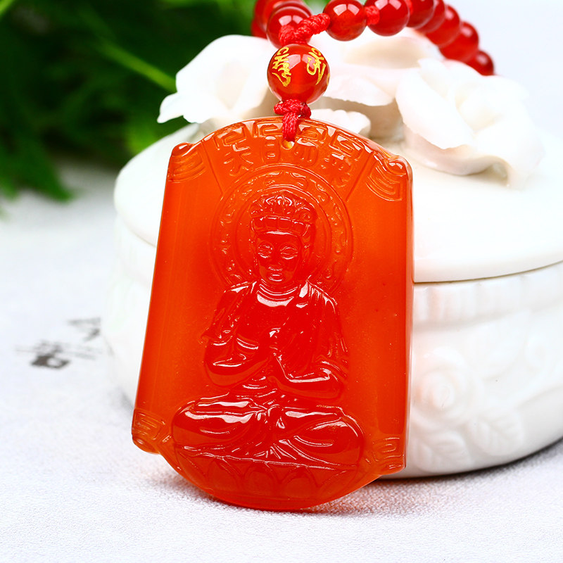 黑曜石红玛瑙生肖守护神吊坠大日如来属羊属猴本命佛平安玉坠