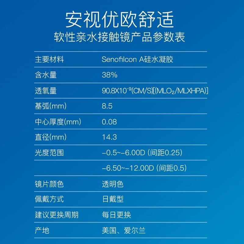 海外版强生安视优欧舒适90片近视隐形眼镜润眸硅水润凝胶日抛*2盒
